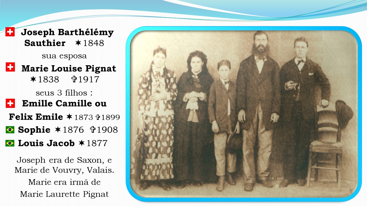 Neste álbum listamos alguns imigrantes Suíço-Valesanos e/ou descendentes de Joseph Antoine Sauthier, do início do processo migratório da Suíça para o Rio Grande do Sul .