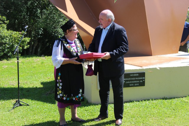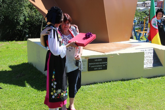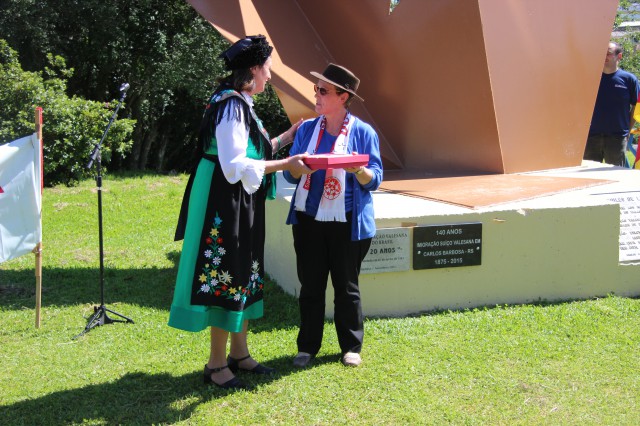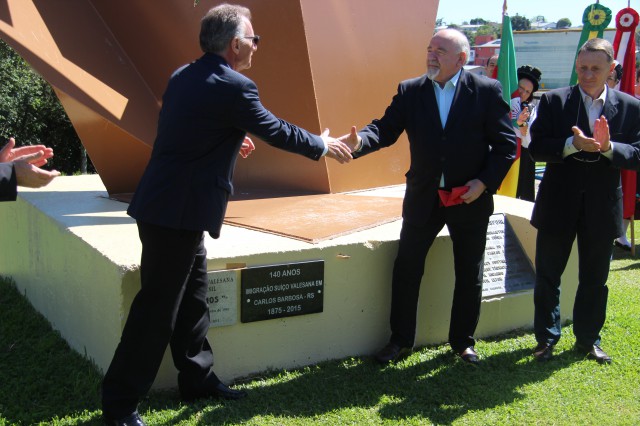 No dia 15 de novembro de 2015 às 9h30min., na praça Clemente Sautheir, no Monumento que homenageia os imigrantes Suíço-Valesanos, houve um ato cívico em comemoração aos 140 anos de Imigração Suíço-Valesana no Rio Grande do Sul. Na oportunidade falaram: Sr. Ivo Sartor, presidente da Associação Suiço-Valesana do Brasil; Sr Gilberto Francisco Baldasso representando o Governador do Estado do RS; Sr. Fernando Xavier da Silva - Prefeito Municipal de Carlos Barbosa; Sr. Gernot Haeberlin - Cônsul Honorário da Suíça em Porto Alegre; Sr. Claudio Leoncavallo - Cônsul Geral da Suíça em São Paulo. Em seguida houve o descerramento da placa alusiva aos 140 Anos de Imigração Suíço-Valesana em Carlos Barbosa; Depois foi feita a entrega de um brinde, por Doroti Chemello, especialmente confeccionado para a ocasião. Receberam o \\\\\\\"souvenir\\\\\\\"; Sra.Manuela Creton, representando o grupo de Suíços, pela Sra. Maria Salete Denicol; Sra.Aliette Giroud, representando o presidente da Associação Valaisans du Monte, Sr. Eric Rudaz, pela Sra. Elaine G.Sauthier Sartor; Sr.Fernando Xavier da Silva, Prefeito de Carlos Barbosa, pela Sra. Ines Natalina Canal; Sr.Gernot Haeberlin, Cônsul Honorário da Suíça em Porto Alegre, pela Sra. Doroti Chemello. Sr. Claudio Leoncavallo, Cônsul Geral da Suíça em São Paulo, pelo Padre Ademar Agostinho Sauthier. No encerramento do ato cívico, todos cantaram o hino riograndense.