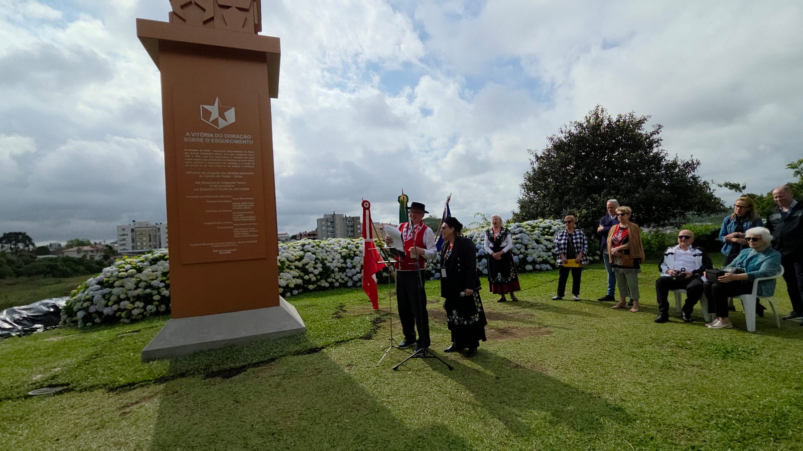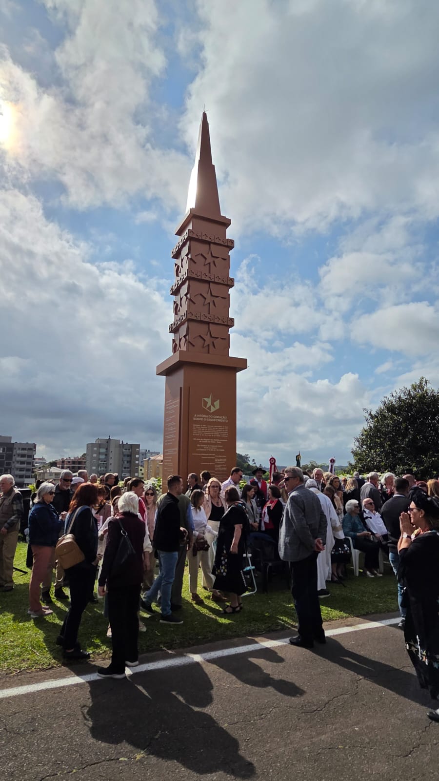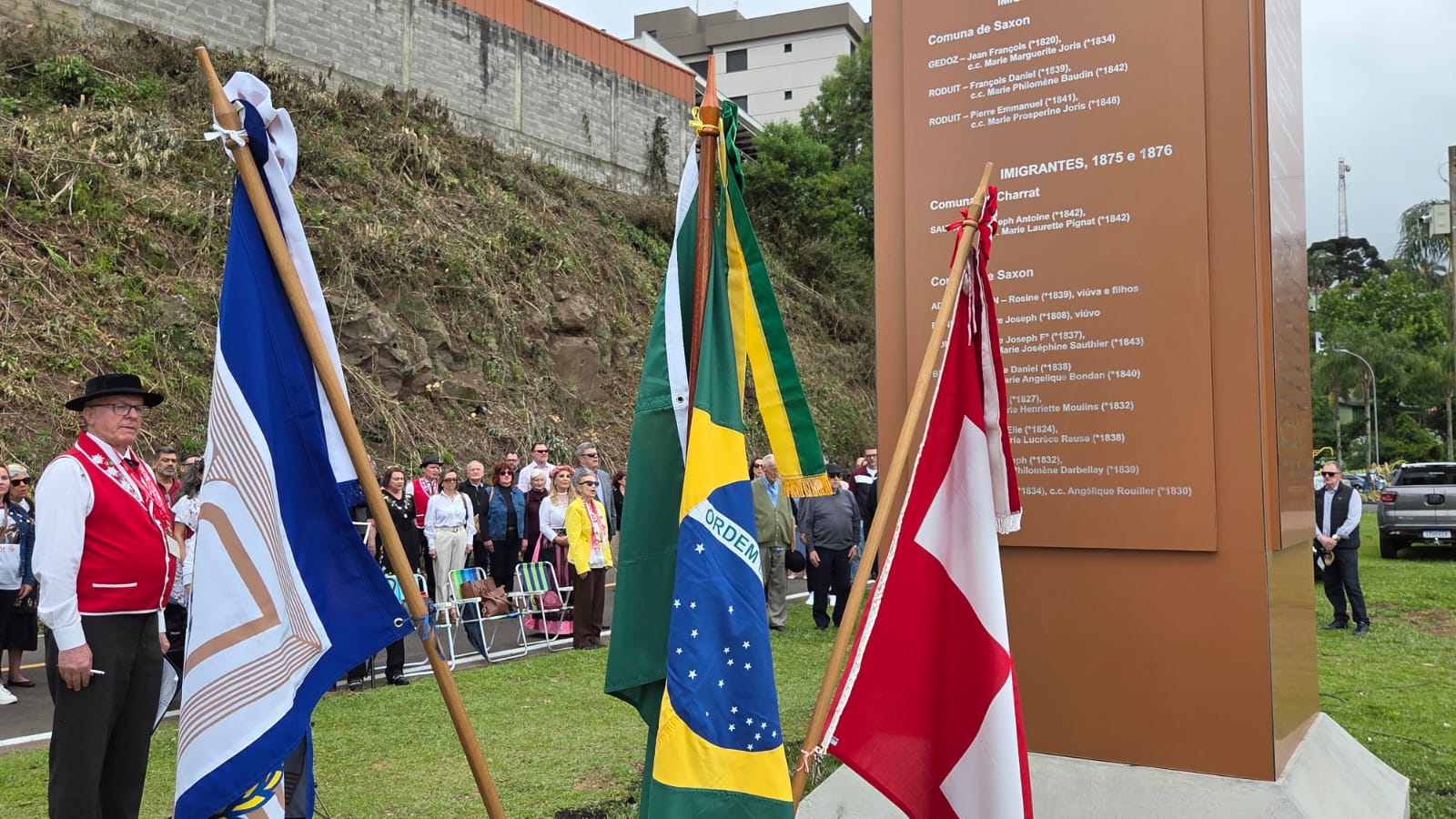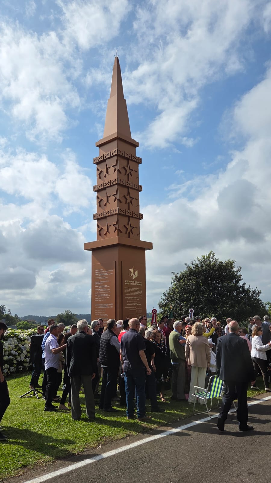 Avec la bénédiction de la plus haute autorité suisse parmi les descendants de Valaisiens du Rio Grande do Sul et les Suisses d'aujourd'hui, le regretté Père Agostinho Sauthier, un obélisque en acier de 4 tonnes et de 12,5 mètres de haut a été inauguré à Carlos Barbosa le samedi 22 novembre 2025.