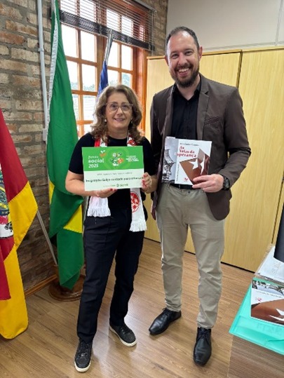 Durante o encontro, Denia foi recebida pelo senhor Hélio Mosena Erthal, Secretário de Educação do município de Barão e da senhora Vanessa Maria Werner, Secretária de Educação de Salvador do Sul, momento em que realizou a entrega formal de exemplares da obra “As Velas da Esperança”. Os livros serão destinados às bibliotecas das escolas de todas as redes de ensino dos dois municípios, às APAES e às Bibliotecas Municipais de ambas as cidades.